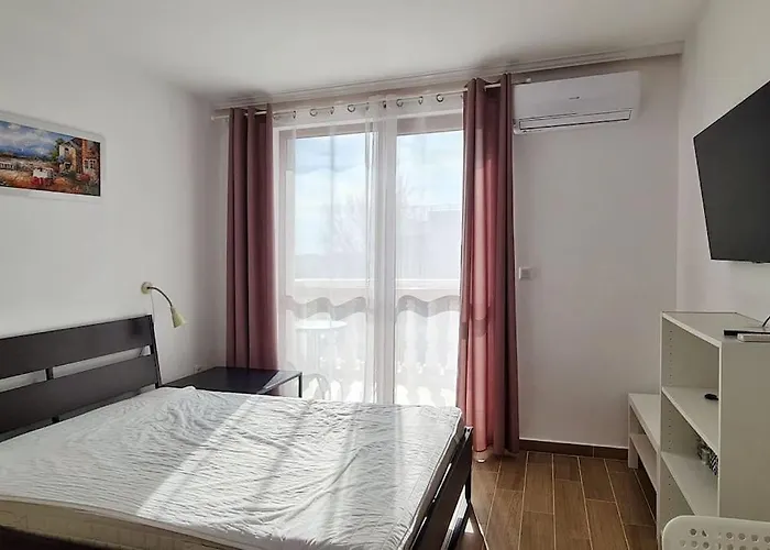 Açık havuza sahip olan Studia V Luchshem Complexe Na Solnechnom Beregu Daire dairesi, Sunny Beach Central Eğlence Parkı'dan 1 kilometre uzaklıktadır. Daire, Cacao Plajı'a 2 km uzaklıktadır.